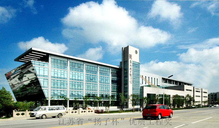 吳江圖書館/檔案館,建筑面積24245 m2 ,框架結構,地下一層,地上五層,工程已獲得蘇州市建筑文明工地稱號,江蘇省“揚子杯”優(yōu)質工程獎。