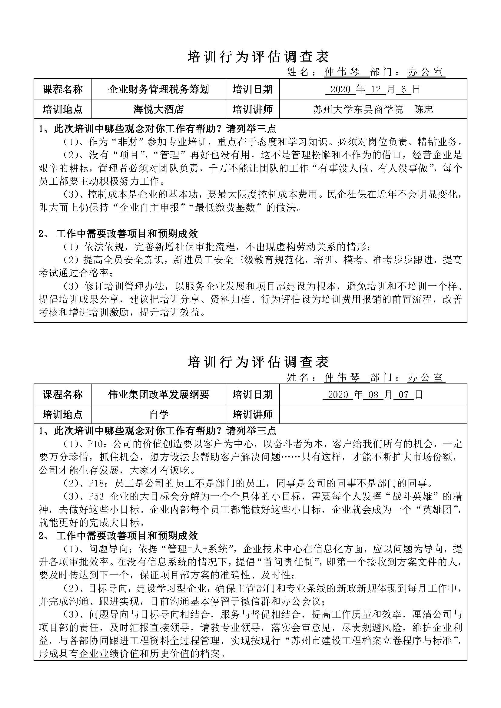 那么,培訓(xùn)效果如何體現(xiàn)?我們往往對(duì)每次培訓(xùn)進(jìn)行分享,但分享之后的反饋似乎只是在微信群收到幾個(gè)大拇指而已,因培訓(xùn)得到的感悟仍然在受訓(xùn)者中熒光閃爍。為了收集這些閃光點(diǎn),我們請(qǐng)大家填一份簡(jiǎn)單的表格,作為年初疫情之后“工作與成長(zhǎng)思考”的印證。沒有參加本次專題培訓(xùn)的員工請(qǐng)以學(xué)習(xí)《蘇州偉業(yè)集團(tuán)改革發(fā)展綱要》或其他專業(yè)學(xué)習(xí)為依據(jù),感謝支持!