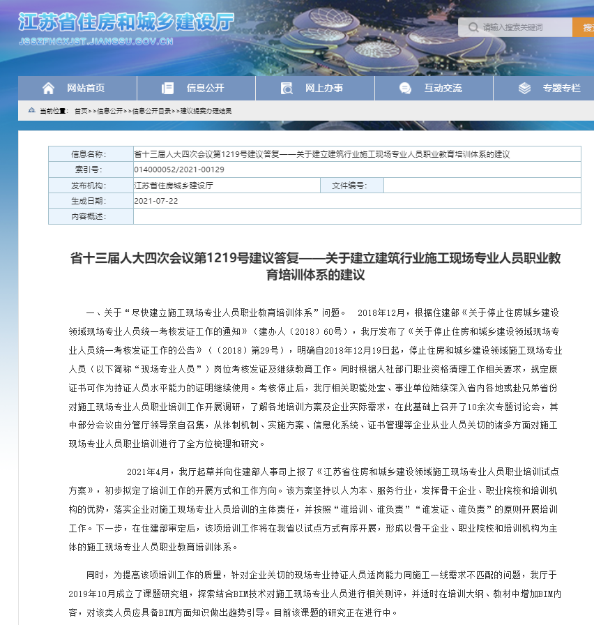 由于項目部管理人員事關(guān)重大,關(guān)于施工現(xiàn)場專業(yè)人員的培訓取證事宜還列上了省十三屆人大四次會議建議。