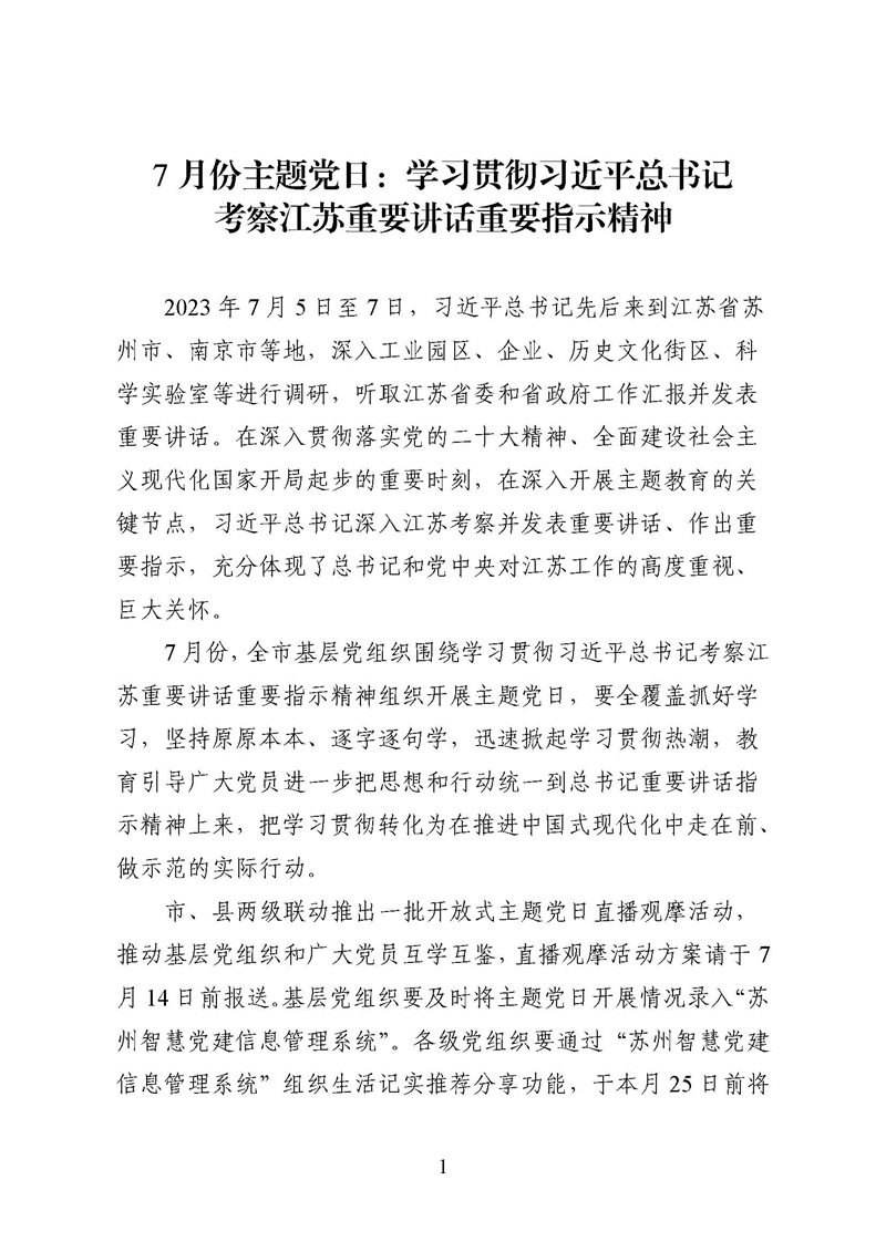 7月份主題黨日:學習貫徹習近平總書記 考察江蘇重要講話重要指示精神